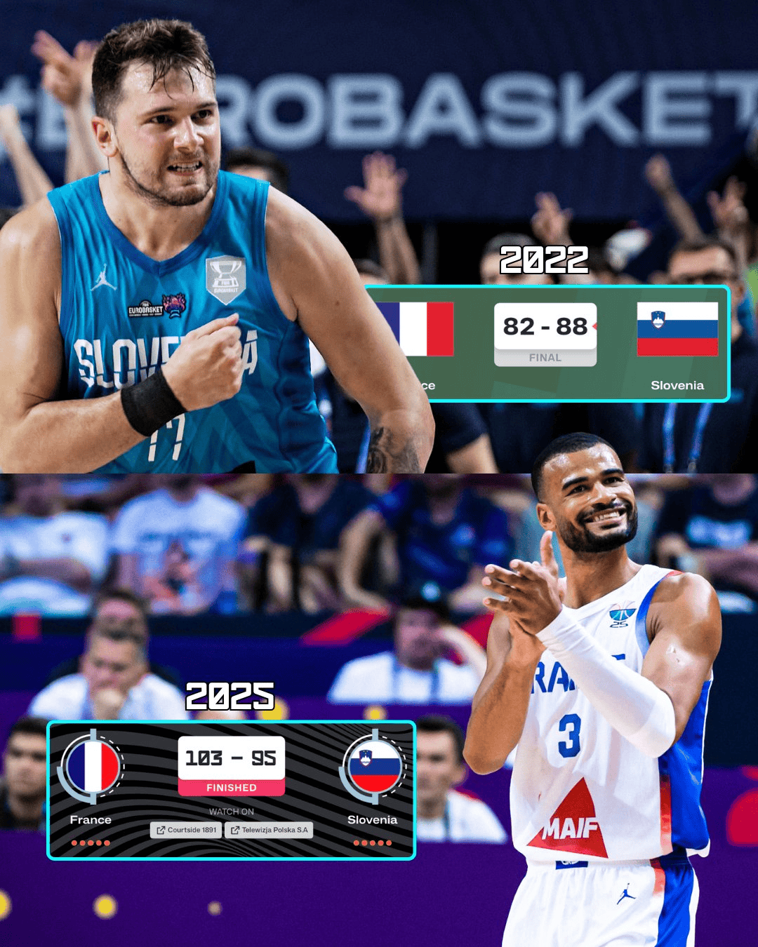 FIBA官方发文:上一届欧锦赛法国不敌斯洛文尼亚,本届欧锦赛完成强势复仇。